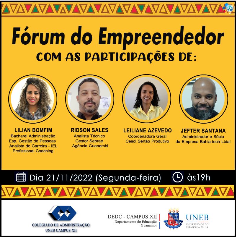 NUPE DEDCXII Inscrição - 09/11/2022 à 21/11/2022ENCONTRAR NOVOS MERCADOS SIGNIFICA PARA UMA EMPRESA PODER DESENVOLVER AS SUAS ATIVIDADES EM UM NOVO PAÍS OU NOVO SEGMENTO. SIGNIFICA ENCONTRAR NOVOS DESTINATÁRIOS PARA OS NOSSOS PRODUTOS E SERVIÇOS; IMPLICA AJUSTES NOS PRODUTOS DESENVOLVIDOS, POTENCIANDO ATÉ DESCOBERTAS DE NOVAS APLICAÇÕES, POSICIONANDO-OS EM VERDADEIROS NICHOS DE MERCADO. É POR TUDO ISSO QUE FAZ SENTIDO FALAR-SE DE EMPREENDEDORISMO. UM EMPREENDEDOR É AQUELA PESSOA QUE TEM A CAPACIDADE DE SE REDESCOBRIR, DE SE REPOSICIONAR, DE SE RENOVAR E SÃO AS QUE TÊM A CAPACIDADE DE TRANSFORMAR AS SUAS VULNERABILIDADES EM OPORTUNIDADES. ESTE PROJETO BUSCA COLOCAR O DISCENTE COM SUAS TEORIAS DE FRENTE COM A APLICABILIDADE DELAS NO MUNDO DOS NEGÓCIOS, COMO FORMA DE ANALISAR MELHOR O QUE ESTÁ ESCRITO E COMO REALMENTE SE APLICAM. APRESENTAÇÃO DE CASES OU PALESTRAS DOS EMPREENDEDORES REGIONAIS CONVIDADOS, ATRAVÉS DE "MESA REDONDA", DESTACANDO A REALIDADE QUE ESSAS EMPRESAS PASSARAM PARA CONSEGUIR CHEGAR AO SUCESSO E DISCUTINDO A REALIDADE ENTRE O MERCADO E A TEORIA. O SONHO DE MUITOS BRASILEIROS, BAIANOS, GUANAMBIENSES, EM ESPECIAL OS DISCENTES DO CURSO DE ADMINISTRAÇÃO, É DEIXAR DE SER EMPREGADO E CONQUISTAR AS CONDIÇÕES NECESSÁRIAS PARA EMPREENDER O SEU PRÓPRIO NEGÓCIO. ENTRETANTO, SER EMPREENDEDOR NÃO É APENAS TER VONTADE PRÓPRIA E VISÃO DE NEGÓCIOS, MAS EXECUTAR AS SUAS ATIVIDADES COM PLANEJAMENTO, DETERMINAÇÃO, PROFISSIONALISMO E UMA BOA DOSE DE OUSADIA, SE DIFERENCIANDO DOS PROFISSIONAIS COMUNS, SEM MEDIR ESFORÇOS QUANTO AOS SEUS OBJETIVOS. O EMPREENDEDOR É UMA PESSOA DECIDIDA, CORAJOSA, CAPAZ DE CALCULAR OS RISCOS, FOCADA, PERSISTENTE, OTIMISTA E QUE ESTÁ SEMPRE BUSCANDO E IDENTIFICANDO NOVAS OPORTUNIDADES DE NEGÓCIOS, GERANDO DESENVOLVIMENTO ECONÔMICO, EMPREGO E RENDA. A CIDADE DE GUANAMBI, LOCALIZADA NO TERRITÓRIO DO SERTÃO PRODUTIVO, POSSUI UM PERFIL DE DESENVOLVIMENTO E EMPREENDEDORISMO, REFORÇANDO, AINDA MAIS, A NECESSIDADE EM DEMONSTRAR ESSES PERFIS ATRAVÉS DE UMA TROCA DE EXPERIÊNCIAS, COM UMA SÉRIE DE EVENTO, "MESA REDONDA", INTEGRANDO A REALIDADE DE MERCADO AO CONHECIMENTO TEÓRICO DOS LIVROS.