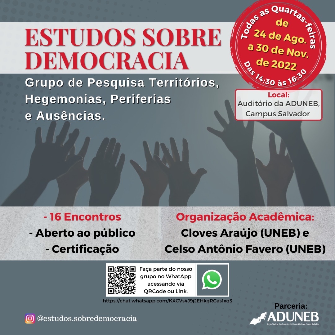 NUPE DEDC I Inscrição - 30/08/2022 à 18/09/2022Vivenciamos um momento de crise política no qual predomina, no cenário brasileiro, uma forte tensão entre projetos ultraconservadores nos diversos âmbitos, social, cultural, educacional e político, que se fundamentam em um ideário extremista e de resgate de propostas autoritárias de educação e de sociedade. Além do mais, tem sido enaltecido um projeto de sociedade baseado no desprezo pelo diálogo e pelos processos interculturais, num evidente desrespeito aos direitos humanos, inclusive com ataques cotidianos à democracia e à Constituição Federal Brasileira de 1988. É urgente a necessidade de reagir a essas perplexidades, reunindo diversos atores sociais comprometidos em refletir e propor alternativas à (re)construção da democracia. Com o objetivo de fortalecer os Direitos Humanos e a Educação em Direitos Humanos (EDH), no atual cenário de incertezas e desafios, buscamos retomar os diálogos pela reconstrução de ações democráticas, formação para a cidadania e a emancipação humana. Nesse sentido, busca-se o desenvolvimento de condições para a garantia da igualdade, a dignidade humana, a convivência com a diversidade e a justiça social. A Rede Brasileira de Educação em Direitos Humanos (ReBEDH) e a Universidade do Estado da Bahia (UNEB) promovem, em parceria com a Universidade Católica do Salvador (UCSal), o I Encontro Regional de Educação em Direitos Humanos (BA, SE, AL, PE) e o III Fórum Baiano de Educação em Direitos Humanos (FBEDH). O evento ocorrerá nos dias 20 e 21 de setembro de 2022, de forma híbrida, no qual algumas atividades serão presenciais e outras de forma on-line nos canais do YouTube da RedeEDH Bahia e ReBEDH-PE. No primeiro dia o evento terá atividades na UNEB campus I e no You Tube. No segundo dia, as atividades se desenvolverão na UCSal, de forma presencial e on-line. Carga horária total: 16 horas Haverá emissão de certificado.