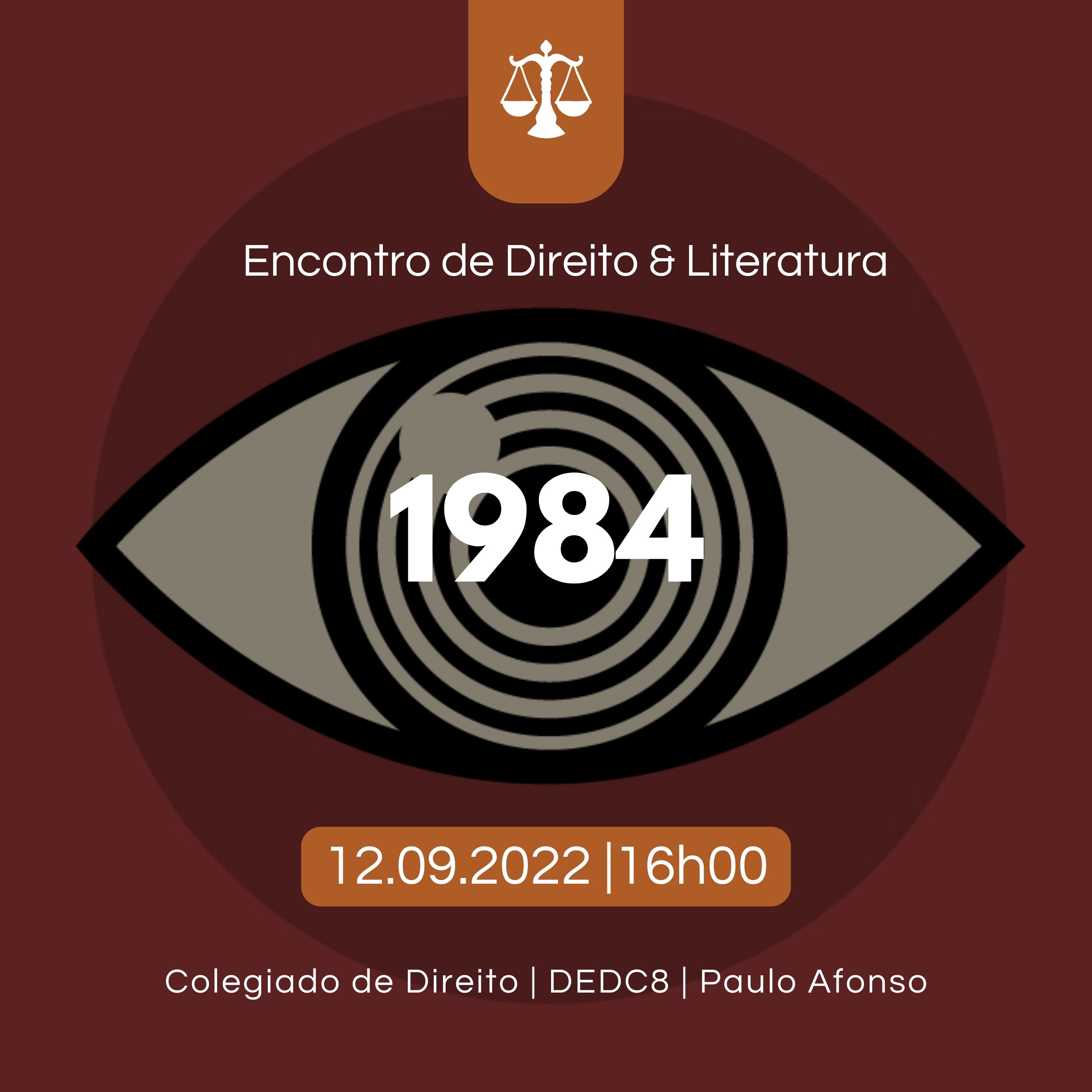 DEDCVIII Inscrição - 19/08/2022 à 12/09/2022O romance 1984, de George Orwell é uma das grandes distopias clássicas da literatura mundial. O romance permite insights sobre as instituições jurídicas e políticas sob um regime totalitário, em que vigora a hipervigilância, restrição de direitos fundamentais, revisionismo histórico e controle de informações, criando um regime política que enxerga opositores como inimigos e a moralidade como regra absoluta de legalidade e controle social. O encontro objetiva debater nuances do romance entre os participantes do Projeto de Extensão Encontros de Direito e Literatura, coordenado pelo Prof. Dr. Ivandro Menezes, do Colegiado de Direito do Departamento de Educação, campus VIII, Paulo Afonso. Encontro: 12/09/2022, às 16:00 Local: UNEB - Campus VIII - Caminhos da Caatinga (Sala 13)