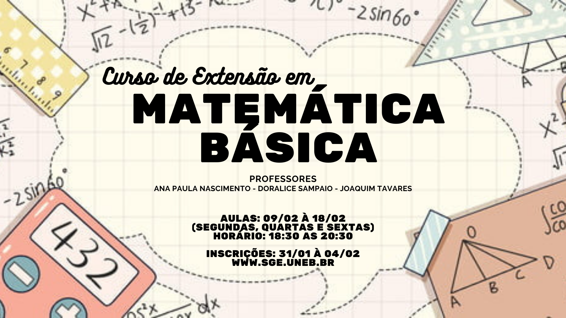 DEDCVII Inscrição - 07/02/2022 à 07/03/2022O II Seminário de Pesquisa e Extensão do Departamento de Educação do Campus VII objetiva aproximar o Território de Identidade Piemonte Norte do Itapicuru do que tem feito os/as docentes e estudantes da Universidade, socializando as diversas práticas extensionistas e de pesquisas realizadas. Com isso, portanto, o evento propõe a vivência de Palestras e Mesas Temáticas. Poderá participar das atividades aqui propostas qualquer pessoa que faça parte da comunidade acadêmica e externa. Respeitando as orientações das entidades de saúde, a metodologia adotada será a virtualidade. Para a transmissão das mesas e palestras será usado o canal do YouTube do Departamento de Educação - Campus VII. Espera-se, com este projeto de extensão, contribuir com os movimentos de socialização das diferentes práticas de extensão e pesquisa realizadas pelos cursos de Teatro, Pedagogia, Biologia, Matemática e Enfermagem; e com a formação de estudantes, professores e demais profissionais das áreas que compõe essas áreas. Data de realização do evento: de 07/03/2022 à 11/03/2022 Período de inscrição: das 00:00 do dia 07/02/2022 às 18:00 do dia 07/03/2022 Certificação: 30 horas Modalidade do evento: Virtual Plataformas de transmissão: YouTube UNEB CAMPUS VII (https://www.youtube.com/channel/UCqk2Yevsbb5hFk_xeoPQ9aQ) YouTube TV UNEB (https://www.youtube.com/c/TVUNEB) Microsoft Teams (Links disponibilizados na programação, logo abaixo) Público-alvo: Comunidade em geral Programação Geral do evento: Horário Segunda 07/03/2022 Terça 08/03/2022 Quarta 09/03/2022 Quinta 10/03/2022 Sexta 11/03/2022 8:00 às 10:00 Aula Magna A UNEB como potência geradora de saberes decoloniais Prof. Dr. Álamo Pimentel (UFSB) Transmissão: Canal da TV UNEB (YouTube) Mesa A formação de professores/as de Matemática e as práticas de pesquisa e extensão no DEDC7: Desafios de um período pandêmico Palestrantes: Prof. Dr. Américo Junior Nunes da Silva (Mediador), Prof. Dr. Ivan Souza Costa, Profa. Dra. Mirian Ferreira de Brito e Prof. Me. Wagner Ferreira Santana Transmissão: Canal da UNEB CAMPUS VII (YouTube) Mesa Produção Acadêmico Científica acerca das questões de Gênero e diversidade sexual no Território Piemonte Norte do Itapicuru Palestrantes: Prof. Dr. Pedro Paulo Souza Rios, Prof. Dr. Michel Silva Guimarães, Profª. Ma. Eliene Almeida Santos, Profª. Ma. Viviane Brás dos Santos (Mediadora) Transmissão: Canal da UNEB CAMPUS VII (YouTube) Mesa RELAÇÕES ÉTNICO-RACIAIS E SUAS INTERFACES NOS PROJETOS DE PESQUISA E EXTENSÃO VINCULADOS AO LAHAFRO/DEDC VII - Trajetórias Quilombolas e Literatura Negra Palestrantes: Profa. Dra. Carmélia Aparecida Silva Miranda (Mediadora/Expositora) e Profa. Ms. Maria Iraídes da Silva Barreto Transmissão: Canal da UNEB CAMPUS VII (YouTube) 10:00 às 12:00 Mesa Atividades extensionistas no contexto remoto: os desafios de realização dos projetos de extensão no formato digital e as articulações das nossas redes de pesquisa Palestrantes: Taína Assis (docente), Enjolras de Oliveira (docente), Reginaldo Carvalho (docente mediador), Agda Elen Da Silva (discente bolsista), Natália Agla Angelim (discente bolsista), Diá (discente bolsista), Levi Silva dos Santos (discente) Transmissão: Canal da UNEB CAMPUS VII (YouTube) Mesa RELAÇÕES ÉTNICO-RACIAIS E SUAS INTERFACES NOS PROJETOS DE PESQUISA E EXTENSÃO VINCULADOS AO LAHAFRO/DEDC VII - Intersecções entre Saúde, Educação e Biologia Palestrantes: Profa. Ms. Eliana do Sacramento de Almeida (Mediadora), Profa. Ms. Rita de Cássia Dias Nascimento, Profa. Ms. Kelly Fernandes Menezes Transmissão: Canal da UNEB CAMPUS VII (YouTube) Mesa A pesquisa na extensão: a importância das redes e o cuidado com a história das artes do palco e do picadeiro Palestrantes: Karina de Faria (docente), Benedito Oliveira (docente), Reginaldo Carvalho (docente mediador), Murilo Aguiar (discente bolsista), Joane Kelly dos Santos (discente bolsista), Jeniffer Santos de Oliveira (discente bolsista), Dayslla Medeiros (discente) Transmissão: Canal da UNEB CAMPUS VII (YouTube) Mesa Contribuições da Botânica para a pesquisa no Campus VII Palestrantes: Profa. Dra. Marileide Saba (mediadora), Prof. Dr. Francisco Hilder Magalhães, Profa. Dra. Valdira de Jesus Santos, Edivan Quirino e Edilane Transmissão: Canal da UNEB CAMPUS VII (YouTube) 13:30 às 15:30 Mesa de Abertura II Seminário e Semana de Acolhimento e Mesa de Discussão Campus VII e um retorno presencial seguro: orientações da COSEBIO para o semestre letivo Palestrantes: Prof. Dr. Álvaro Fonseca, Prof. Dr. Gustavo Brandão e Profa. Ms. Rita Nascimento Transmissão: Microsoft Teams. Link: http://encurtador.com.br/pwzQ6 Mesa A Extensão e a Pesquisa na formação do/a enfermeiro/a: ampliando o olhar acerca do cuidado pré-natal, Aleitamento Materno, Sexualidade, Gênero, HIV e Práticas educativas em saúde Palestrantes: Professora Drª Magna Santos Andrade, Professora Me. Tatiane Pina Santos Linhares , Professora Me. Eliene Almeida Santos, Professora Drª Cleuma Sueli Santos Suto (Mediadora) Transmissão: Canal da UNEB CAMPUS VII (YouTube) Mesa O projeto a técnica Shantala e seus benefícios na estratégia de saúde da família no período pandêmico: descobertas de novos olhares para desenvolvimento das ações e sua conexão com o projeto Cria Feliz Palestrantes: Profa. Silvana Nunes (Mediadora) e Profa. Jenifen Miranda Vilas Boas. Discentes: Fernanda de Souza Silva, Josenilde Damascena de Oliveira, Marianna Lino, Valéria Ribeiro dos Santos e Cátia Vanessa Rodrigues dos Santos. Transmissão: Canal da UNEB CAMPUS VII (YouTube) Mesa 1 Desafios da atualidade: Pesquisa e Extensão em uma sociedade distópica Palestrantes: Profa. Rosana da S. Peixoto, Profa. Cristiana de Cerqueira Silva Santana e Profa. Marta Maria Oliveira de Santana. Mediação: Profa. Dra. Rosana da S. Peixoto ___________________________ Mesa 2