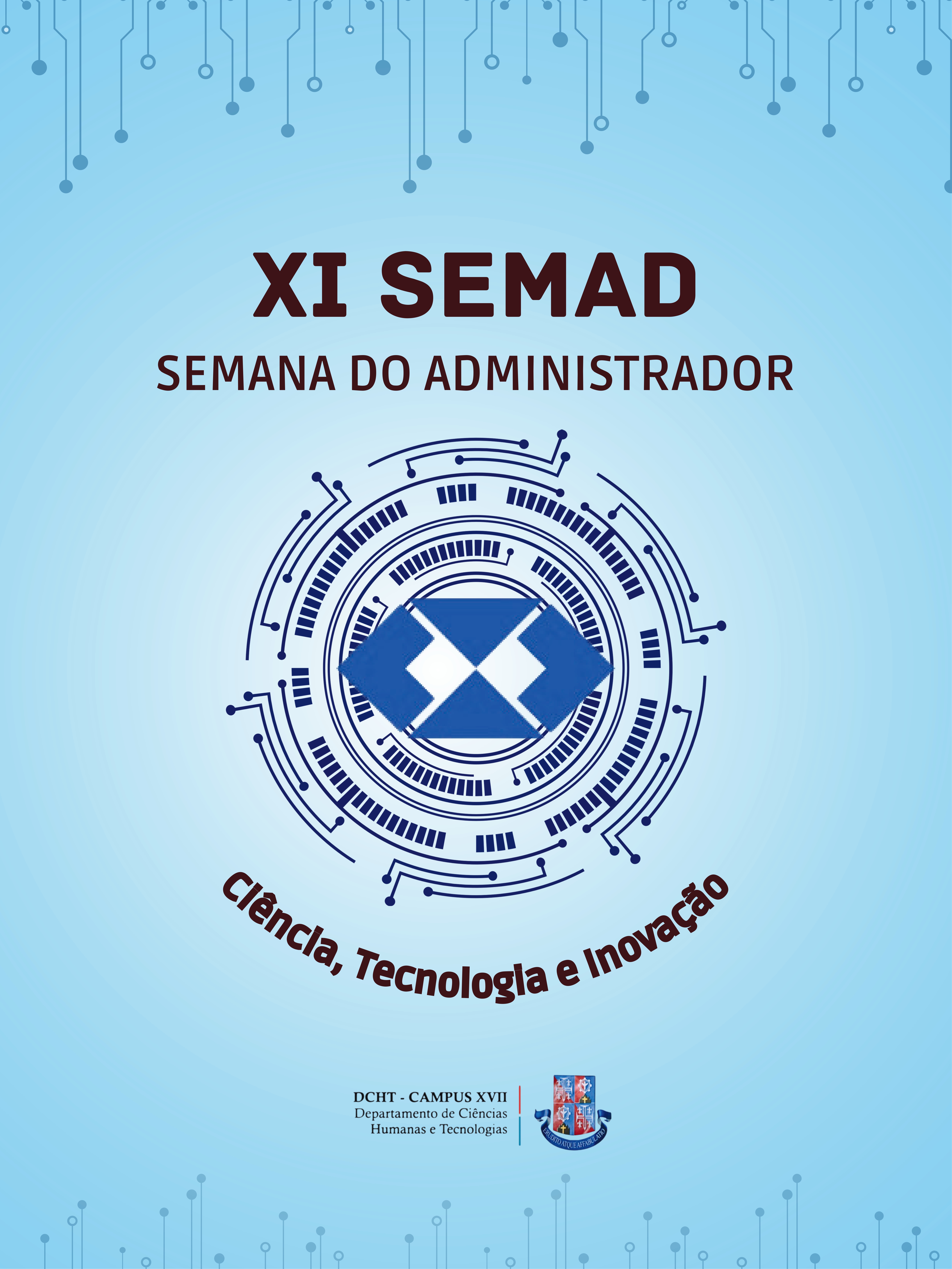 DCHTXVII Inscrição - 04/09/2021 à 04/10/2021Nos dia 8, 9 e 10 de setembro de 2021 acontecerá a nona edição de SEMAD - Semana do Administrador da UNEB, DCHT, campus XVII, Bom Jesus da Lapa. A SEMAD é um evento acadêmico-científico- cultural idealizado para celebrar o dia do Administrador, data esta oficializada nacionalmente em 9 de setembro de 1965. Por conta da pandemia da covid-19, esta será a primeira vez que o evento acontece de forma virtual, mas mantendo a tradição de trazer grandes profissionais da área. A novidade deste ano é uma mesa com egressos do curso de Administração, que contarão um pouco do percurso acadêmico e laboral, agora na condição de profissionais e empreendedores.