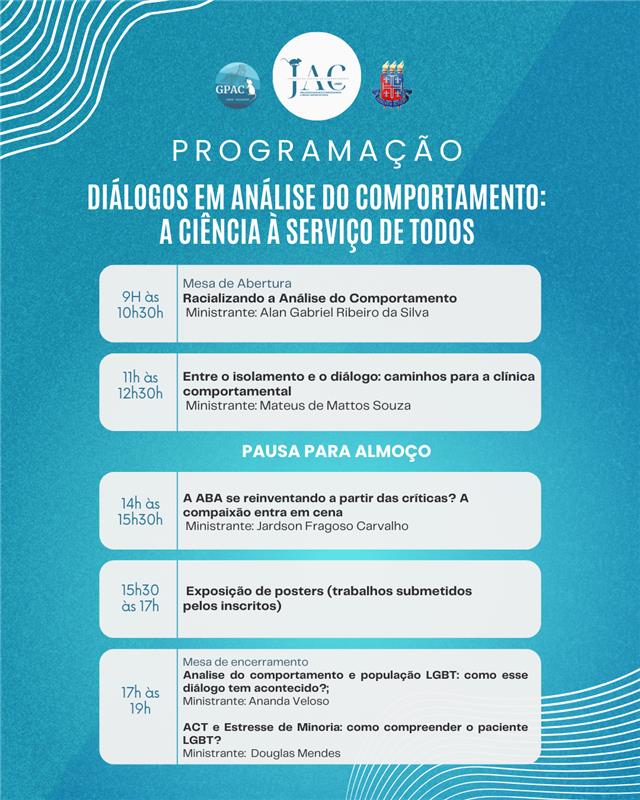 DEDCI Inscrição - 23/09/2025 à 07/10/2025Nome do evento: I Jornada da Análise do Comportamento da UNEB • Data do evento: 08/10/2025 • Número de vagas: 100 vagas • Período de inscrições: 23 de setembro de 2025 até 07 de outubro de 2025