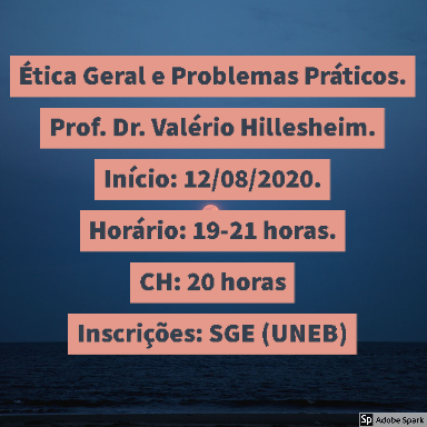 NUPE DEDC I Inscrição - 29/07/2020 à 11/08/2020PROJETO ÉTICA GERAL E PROBLEMAS PRÁTICOS Data de início e término das inscrições 29/07/2020- 05/08/2020 Data de início e término do Projeto; 05/08/2020-30/11/2020 Horários de encontros; quartas: 19h00 às 21h00 Carga horária; 20 horas Número de vagas; 50