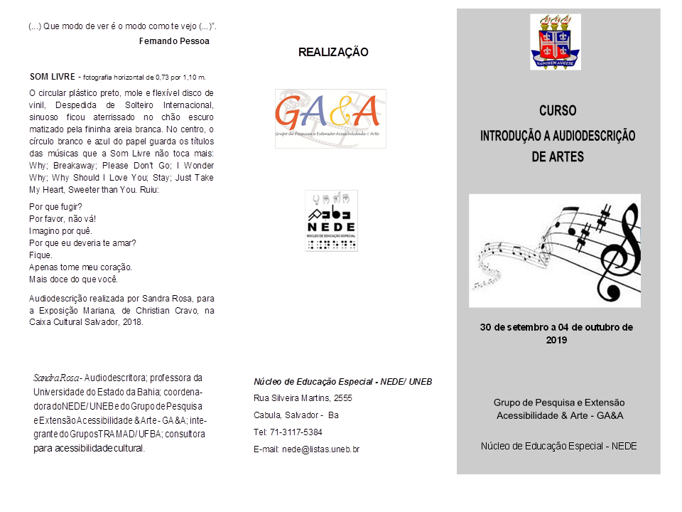 CURSO INTRODUÇÃO A AUDIODESCRIÇÃO DE ARTES 2019