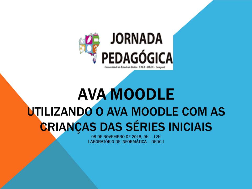 NUPE DEDC I Inscrição - 04/11/2018 à 09/11/2018UTILIZANDO O AVA MOODLE COM AS CRIANÇAS DAS SÉRIES INCIAIS O minicurso será realizado como parte integrante de uma das atividades oferecidas na V Jornada Pedagógica. Objetivo Geral Possibilitar aos professores o desenvolvimento de habilidades e competências para utilização do Moodle no processo de letramento com as crianças nos Anos Iniciais do Ensino Fundamental I Observação aos interessados que conseguirem se inscrever: enviar seus dados (e-mail, nome completo e cpf) para o e-mail eventosdedc1@gmail.com com o assunto AVA MOODLE até o dia 7 de Novembro de 2018.