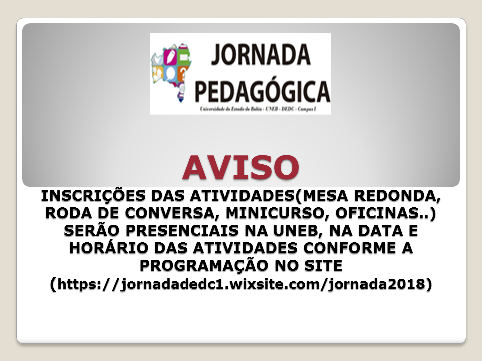EdUReg Inscrição - 01/11/2018 à 05/11/2018O grupo de pesquisa Educação, Universidade e Região (EdUReg) vinculado aos Programas de Pós-Graduação stricto sensu Gestão e Tecnologias Aplicadas à Educação (GESTEC) - mestrado profissional e Educação em Contemporaneidade (PPGEduC) – mestrado e doutorado acadêmico, desde o ano de 2016 oferece minicursos e cursos de curta duração para a comunidade acadêmica, redes de ensino e apoiadores da pesquisa em Educação. Desde a primeira edição, essas atividades acadêmico-científicas, contam com o protagonismo dos mestrandos, professores e de atores das redes escolares e institucionais nas quais as pesquisas têm sido desenvolvidas, com especial apoio do Departamento de Educação (DEDC) do campus Salvador – UNEB. Além disso essas atividades constituem aprendizagem complementar e de interação sócio institucional para nossos mestrandos e doutorandos. Nossa perspectiva afirma-se no compromisso de que fazer pesquisa é sobretudo estar implicado com o território e suas necessidades! Neste ano de 2018 iniciamos a oferta com o minicurso Leitura e Escrita na Educação: experimentação (po)ética com o texto. Esta proposta está vinculada às pesquisas desenvolvidas no EdUReg e que se ocupam de desnaturalizar Leitura e Escrita no contexto da educação. Neste minicurso contamos com a participação do curso de Psicologia da UNIJORGE - Paralela. Para fazê-lo temos nos ocupado de reunir e problematizar diferentes variações em torno da escrita e da leitura praticados por discentes, professores e pesquisadores, no contexto da formação e da docência, em Educação e nas Humanidades. Assim o minicurso, ora proposto, cria espaço de experimentação com o texto. RESUMO O texto efetiva-se como política de combate e ou (po)ética. O texto se faz como produção de sentidos que se constitui como parte de uma desobediência a linguagem (SKLIAR, 2016; BEDIN, 2017). Para este tipo de experimentação provoca-se um procedimento de leitura e escrita junto com o texto Galáxias, do poeta Haroldo de Campos (2004). Referências BEDIN, Luciano. Ainda escrever: 58 combates para uma política do texto. São Paulo: Lumme editor, 2017. CAMPOS, Haroldo. Galáxias. São Paulo: Editora 34, 2004. SKLIAR, Carlos. Desobedecer a linguagem: educar. (Trad. Giane Lessa) Belo Horizonte: Autêntica, 2014.