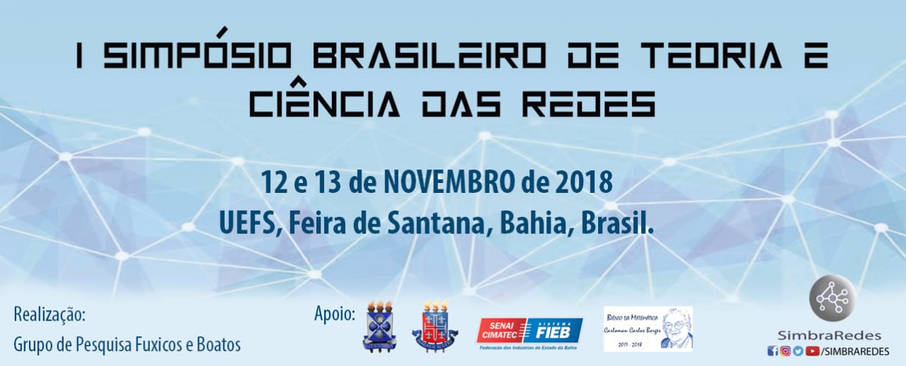 DMMDC Inscrição - 16/07/2018 à 09/11/2018O 1º Simpósio Brasileiro de Teoria e Ciência das Redes é uma iniciativa multi-institucional, realizada pela Universidade Estadual de Feira de Santana, Senai/Cimatec, Universidade Federal da Bahia, Universidade do Estado da Bahia e Instituto Federal da Bahia. O objetivo é discutir as questões que emergem da Teoria e Ciência das Redes e as aplicações na sociedade, através de uma proposta interdisciplinar. O evento será realizado no campus da Universidade Estadual de Feira de Santana – UEFS, munícipio de Feira de Santana – Bahia, entre os dias 12 e 13 de novembro de 2018. As submissões dos trabalhos 01 de agosto de 2018 a 30 de setembro de 2018.