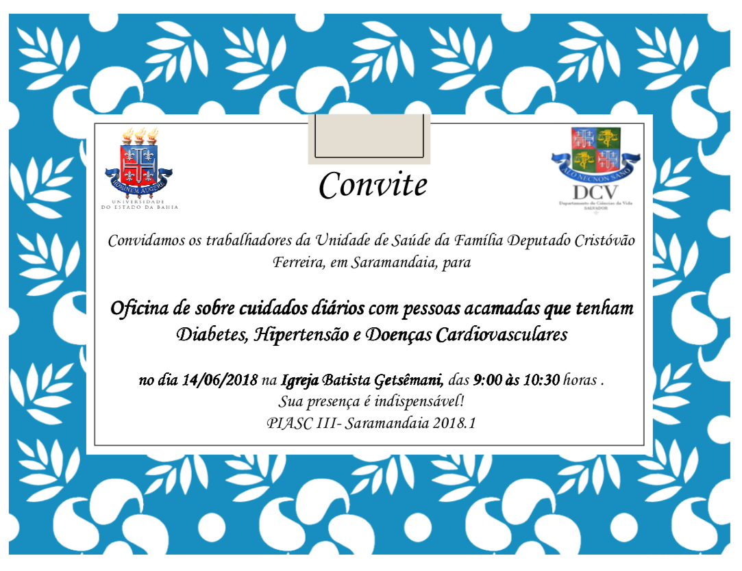 Oficina Cuidados a pessoas acamadas com Hipertensão Arterial e Diabetes Mellitus tipo II na comunidade de Saramandaia