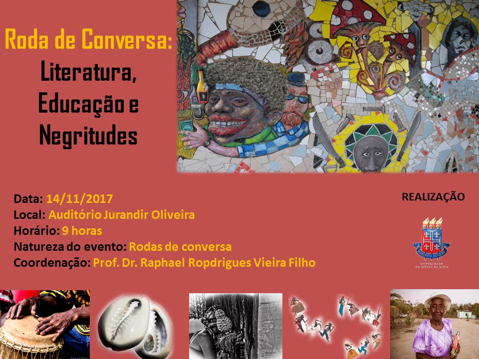 NUPE DEDC I Inscrição - 20/10/2017 à 13/11/2017O curso pretende apresentar e aprofundar o estudo de temas específicos sobre Antropologia Afro-Americana, proporcionando o contato dos alunos dos diversos cursos do DEDC - I com a temática. As atividades se iniciaram no dia 16 de outubro de 2017, com a roda de conversa: "Literatura, Educação e Negritudes". O evento contou com a participação do "Sarau Bem Black", "Quartinhas de Aruá", Nelson Maca e Lande Onawale. A próxima edição será no dia 14/11/2017, com Lívia Nátia e Jocélia Fonseca. A intenção é discutir a poesia negra baiana, além de refletir a literatura afrodescendente desde Luiz Gama. Informações gerais Data: 14/11/2017 Local: Auditório Jurandir Oliveira Horário: 9 horas Natureza do evento: Rodas de conversa