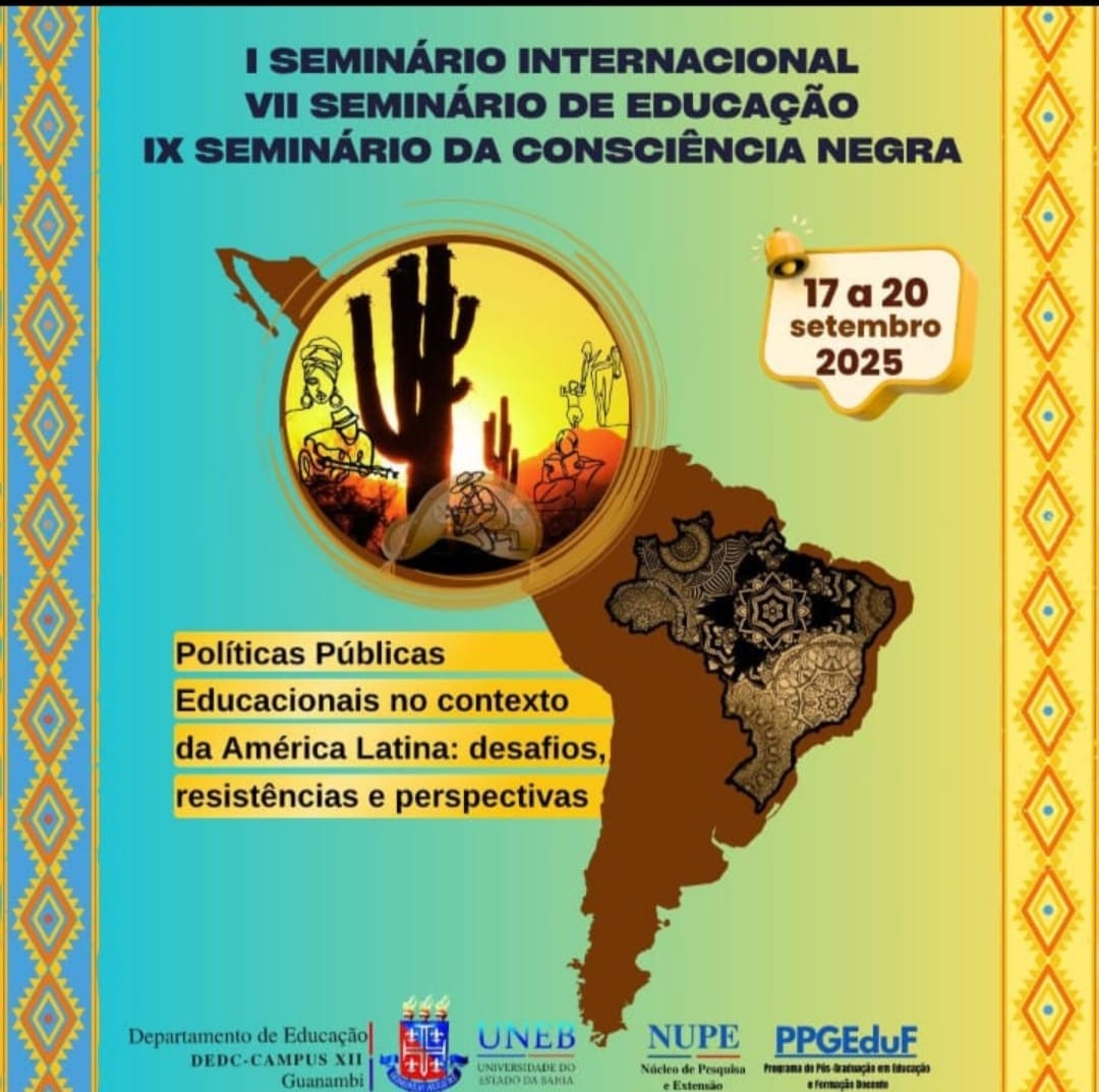 DEDCXII Inscrição - 03/07/2025 à 19/09/2025O I Seminário Internacional, o VII Seminário de Educação e o IX Seminário da Consciência Negra do curso de Pedagogia do Departamento de Educação, Campus XII, objetivam estabelecer processos de escuta, reflexões, socialização e compartilhamentos da produção do conhecimento acerca das políticas públicas educacionais no contexto da América Latina, apontando e problematizando os desafios, as resistências e suas perspectivas. Em consonância com os grupos de pesquisa - Núcleo de Pesquisa e Extensão Educacional Paulo Freire (Nepe), Observatório da Educação do Campo do Território Sertão Produtivo (ObEdoC), Grupo de Estudos e Pesquisas em Poli´ticas Educacionais, Avaliac¸a~o e Gesta~o (GEPEAG), Observatório da Infância e Educação Infantil (ObEI), Educação das Relações Étnico-raciais, Currículo e Decolonialidade (ERECD) e do Programa de Pós-Graduação, Mestrado em Educação e Formação Docente (PPGEduF), o evento propõe debates, trocas, interações e colaborações por meio de rodas de conversa, mesas de diálogos, apresentação de trabalhos científicos e relatos de experiências, oficinas pedagógicas em espaços escolares e não escolares, lançamento de livros, conferências, exposições, Feira da Agricultura Familiar e momentos artísticos e culturais, a partir dos seguintes eixos temáticos: Eixo 1: Infância, Políticas e Práticas de Educação Infantil; Eixo 2: Políticas e Práticas de Formação e de Currículo na Educação Básica e no Ensino Superior no Contexto da América Latina; Eixo 3: Formação e Trabalho de Professores(as) para a Educação Inclusiva, Étnico-Racial, Intercultural, Decolonial, Antirracista, Feminista e Ambiental no Contexto da América Latina; Eixo 4: Educação do/no Campo, Trabalho e Agroecologia, Educação Popular; Educação de Jovens e Adultos e o Trabalho de Educar em e com Movimentos Sociais; Eixo 5: Tecnologias Digitais nas Novas Configurações do Trabalho e da Formação Docente; Eixo 6: Políticas de Assistência, Saúde e Condições de Trabalho na Profissão Docente. Esse evento envolve professores(as), estudantes, pesquisadores(as), profissionais da educação básica e superior e outros coletivos, buscando ser um espaço de exposição, discussão e reflexão em torno das políticas públicas educacionais. Trata-se de uma atividade de caráter científico, direcionada à comunidade acadêmica, aos(às) professores(as) dos diferentes níveis e modalidades de ensino, aos(às) estudantes da educação básica, da graduação e da pós-graduação, aos sujeitos dos movimentos sociais e da sociedade civil. O evento acontecerá no período de 17 a 20 de setembro de 2025, no DEDC XII, na cidade de Guanambi, estado da Bahia. A realização do I Seminário Internacional, VII Seminário de Educação e IX Seminário da Consciência Negra se constitui em um espaço democrático de discussão sobre as políticas públicas educacionais dos últimos 20 anos no contexto da América Latina, problematizando suas implicações na garantia de uma educação democrática, plural, antirracista e inclusiva, por meio de atividades diversificadas apresentadas na programação. NORMAS PARA SUBMISSÃO DE RESUMO EXPANDIDO, CARTA PEDAGÓGICA E RELATO DE EXPERIÊNCIA A comissão científica do I Seminário Internacional, VII Seminário de Educação e IX Seminário da Consciência Negra, cujo tema é “Políticas Públicas Educacionais no Contexto da América Latina: Desafios, Resistências e Perspectivas”, receberá inscrições de trabalhos na categoria Comunicação Oral, no período de 1° a 25 de julho de 2025. Esses trabalhos devem apresentar resultados de atividades de ensino, pesquisa e extensão realizados por profissionais de diversas áreas de conhecimento, pesquisadores(as) e estudantes. Os trabalhos nas modalidades Resumo Expandido, Carta Pedagógica e Relato de Experiência serão apresentados no evento e publicados nos Anais do I Seminário Internacional, VII Seminário de Educação e IX Seminário da Consciência Negra, relacionados aos seis eixos temáticos definidos para o referido evento, apresentados conforme as normas da Associação Brasileira de Normas Técnicas (ABNT) em vigor: NBR 6022 (2018), NBR 6028 (2021), NBR 6023 (2020); NBR 10520 (2023). Serão aceitos, para análise com vistas à publicação, trabalhos de docentes da Educação Básica, da Educação Superior, de outros espaços educativos escolares e não escolares (movimentos sociais, organizações não governamentais, entre outros) e de discentes do ensino médio, da graduação e da pós-graduação. A inscrição para participar do I Seminário Internacional, VII Seminário de Educação e IX Seminário da Consciência Negra é condição para submeter trabalhos em Português, Inglês ou Espanhol, por meio do link: https://revistas.uneb.br/index.php/andedcxii/about/submissions. É necessário que todos(as) autores(as) estejam devidamente inscritos(as) no evento (inscrições no SGE - https://www.sge.uneb.br/6211?tipo=4&eventoId=6211) e efetuem o pagamento da taxa de inscrição. Os trabalhos encaminhados deverão ser revisados antes de efetivarem a inscrição, considerando aspectos gramaticais e de formatação, de acordo com as normas técnicas da ABNT e as diretrizes do I Seminário Internacional, VII Seminário de Educação e IX Seminário da Consciência Negra. Os(as) estudantes (ensino médio, graduação e pós-graduação) participantes poderão submeter até três trabalhos, sendo um como autor(a) e dois como coautor(a). E os(as) professores(as) e outros(as) profissionais até cinco trabalhos, sendo um como autor(a) e quatro como coautor(a). Em caso de submissão de mais de um trabalho no evento, não há impedimento de que sejam para eixos temáticos diferentes. A inscrição dos trabalhos deverá ser realizada na Plataforma Anais de Eventos DEDC XII - https://revistas.uneb.br/in