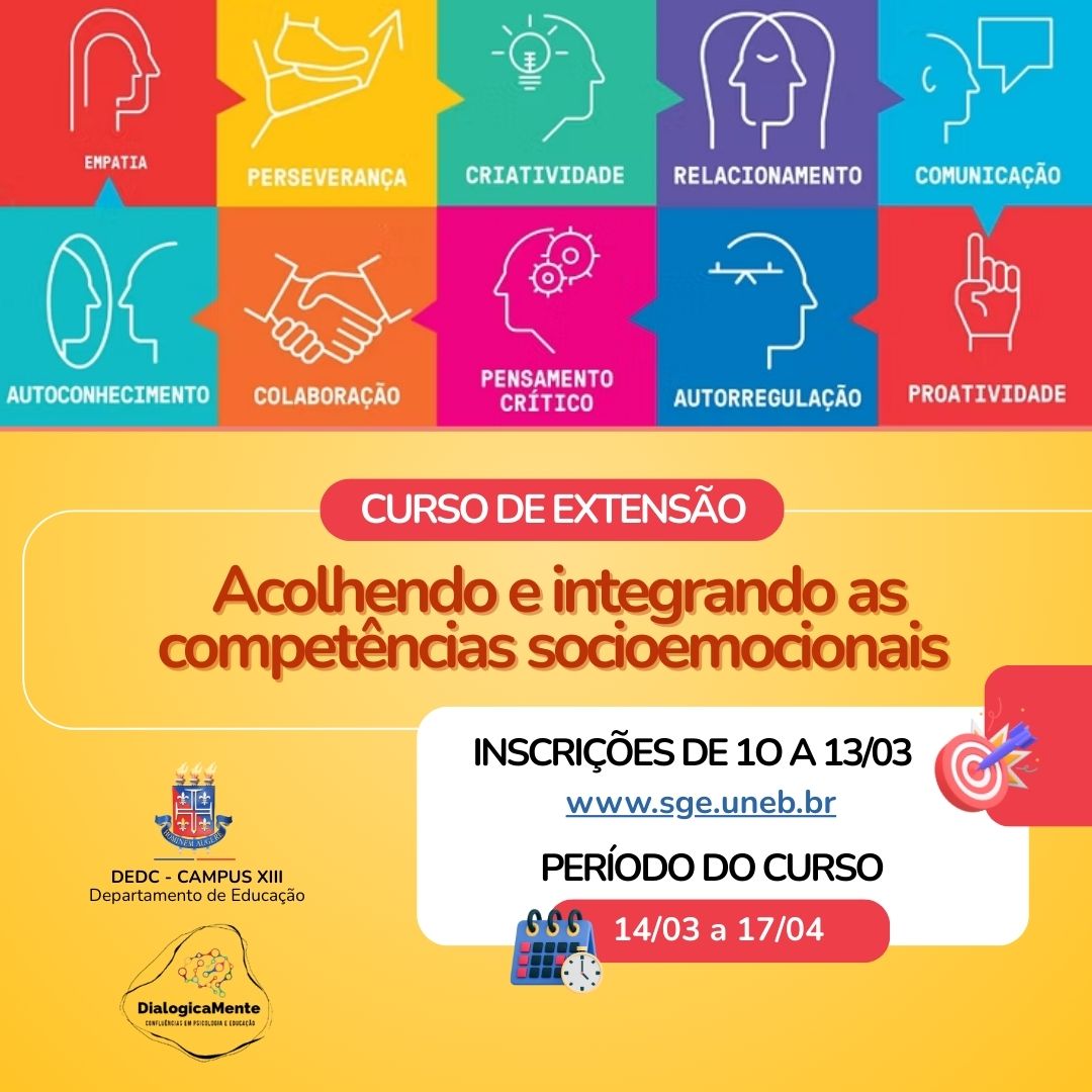 DEDCXIII Inscrição - 10/03/2025 à 13/03/2025O curso de extensão Acolhendo e integrando competências socioemocionais, pretende contribuir com a formação inicial e continuada de professores do município de Itaberaba e região, através de ação de extensão que aborda as competências socioemocionais, seus pressupostos teóricos, sua curricularização e reverberações no fazer docente, relacionando temas transversais e emergentes. Objetivos - apresentar as competências socioemocionais e seus pressupostos teóricos; refletir sobre a curricularização das competências socioemocionais na BNCC e as reverberações no fazer docente; desenvolver atividades práticas para inserir as competências socioemocionais no exercício docente; Público – estudantes e professores em formação inicial e continuada, aberto para comunidade interna e externa. Lócus – encontros híbridos | aulas remotas e presenciais - em sala de aula do Departamento de Educação - Campus XIII e na Plataforma Microsoft Teams. Cronograma – formação de turma com no máximo 30 estudantes e desenvolvimento no semestre de 2025.1 - periodicidade semanal, perfazendo 30 horas. Previsão dos encontros: março: 14, 18 e 25; abril: 01, 08 e 15. Metodologia de execução – os encontros do curso serão desenvolvidos a partir de abordagem interacionista, com socialização de teorias psicológicas e da educação, vivências através de exercícios e momentos reflexivos. Pretende-se com esse processo estimular a aprendizagem significativa e utilizar intencionalmente as metodologias ativas. A competência socioemocional está relacionada a uma inter-relação de habilidades emocionais e sociais que auxiliam a pessoa a manejar melhor suas emoções, a relacionar-se positivamente com outros e a executar seu fazer profissional (Marques; Tanaka; Foz, 2019). O desenvolvimento das competências socioemocionais na docência pressupõe que o aprender envolve não só os aspectos cognitivos e tecnicistas, mas também emocionais e sociais, focando na compreensão das relações interpessoais e das emoções emaranhadas no processo de ensino e da aprendizagem significativa (Abed, 2014). Essa discussão traz à tona, em meio a tantos temas emergentes, a relevância e inquestionável urgência do desenvolvimento das competências socioemocionais no processo de formação profissional, pressupondo sua integração nos currículos intertransculturais para formação continuada de professores, e no reconhecimento de sua contribuição no desenvolvimento, aprimoramento e consolidação de uma educação significativa (Abed, 2014). As tendências pedagógicas progressistas contemporâneas apontam que o desenvolvimento das competências socioemocionais é um desafio a ser incorporado na dinâmica escolar e dos seus atores. As competências socioemocionais constituem uma integração de saberes e fazeres sobre si mesmo e sobre os demais, apoiando-se na consciência, na expressão e no manejo das emoções, cujo objetivo é aumentar o bem-estar pessoal (subjetivo e psicológico) e a qualidade das relações sociais (Gondim; Morais; Brantes, 2014, p. 400). Corroborando com essa perspectiva, Rafael Bisquerra faz menção a cinco componentes da competência socioemocional: 1) consciência emocional de si e de outras pessoas; 2) regulação emocional, se refere ao gerenciamento das emoções; 3) autonomia emocional, que destaca a atitude positiva em relação a si mesmo e a vida, mantendo a autoestima elevada e reconhecendo os limites pessoais, recorrendo, em caso de necessidade, à ajuda externa; 4) domínio de habilidades sociais, em que se destaca a capacidade de se comunicar, ser assertivo e adotar atitudes respeitosas para com as demais pessoas; e 5) habilidades de vida e bem-estar, definidas como a capacidade de adotar comportamentos apropriados e responsáveis na solução de problemas pessoais, familiares, profissionais e sociais, preservando o bem-estar pessoal e social (2009, p.143). Salientamos que a inclusão das competências socioemocionais na Base Nacional Curricular Comum - BNCC (BRASIL, 2018) se configura um avanço, que incrementa a qualificação, na medida em que propicia formação multidimensional, para o exercício de sua cidadania ativa no mundo do trabalho e na sociedade do século XXI. Desse modo, [...] as aprendizagens essenciais definidas na BNCC devem concorrer para assegurar aos estudantes o desenvolvimento de dez competências gerais, que consubstanciam, no âmbito pedagógico, os direitos de aprendizagem e desenvolvimento. Na BNCC, competência é definida como a mobilização de conhecimentos, habilidades (práticas, cognitivas e socioemocionais), atitudes e valores para resolver demandas complexas da vida cotidiana, do pleno exercício da cidadania e do mundo do trabalho (BRASIL, p. 10, 2018). Diferente de outros aspectos (que não constituem o foco neste espaço) aos quais cabe mais apurada análise, certa reserva e críticas às normativas da BNCC (2018), a centralidade conferida às competências não é só “mais uma exigência burocrática” ou “modismo pedagógico”, é sim plenamente justificável do ponto de vista educacional em se tratando de saberes e fazeres comprovadamente essenciais na vida subjetiva, social e profissional dos sujeitos. Trabalhar as competências socioemocionais nos docentes pressupõe oportunizar intencionalmente, o desenvolvimento da inteligência emocional e das habilidades sociais e emocionais a partir do reconhecimento, acolhimento e manejo assertivo das emoções básicas e complexas. Ademais, as competências socioemocionais incidem nas competências cognitivas e reverberam nas subjetividades dos sujeitos e nos processos de socialização e profissionalização, conforme salientam Gondim, Morais e Brantes (2014): As competências socioemocionais, funcionam como via pela qual as demais competências são expressas e desenvolvidas. Em outras palavras, o domínio de a