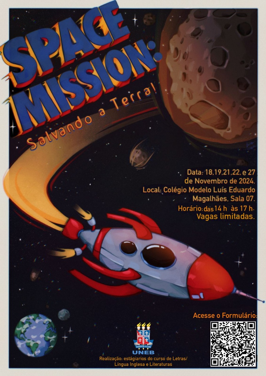 DCHVI Inscrição - 11/11/2024 à 04/12/2024Oficinas de Estágio II - aprender inglês nunca foi tão inspirador! De 25 a 29 de novembro A Semana de Oficinas de Estágio II do curso de Letras/Língua Inglesa e Literaturas objetiva promover o aprimoramento das habilidades de Reading, Writing, Listening e Speaking de alunos e alunas do Ensino Fundamental II e do Ensino Médio de escolas públicas por meio de atividades que envolvem a literatura, a resolução de enigmas desafiadores, o uso de apps e metodologias dinâmicas, proporcionando momentos de inspiração e engajamento para os participantes. OFICINA 1 Título: Space Mission – Salvando a Terra Resumo: Vocês recebem uma mensagem de emergência: "Um enorme asteroide está em rota de colisão com a Terra. O único sistema capaz de desviar o asteroide está na estação, mas a inteligência artificial que controla tudo foi desativada. Vocês são os únicos capazes de reativar a IA, resolver os enigmas e salvar a Terra". Esta oficina visa oferecer uma experiência inovadora de ensino da língua inglesa, superando os limites da sala de aula tradicional. Através da dinâmica do Escape Room, os participantes serão imersos em um ambiente desafiador e envolvente, onde deverão solucionar enigmas e quebra-cabeças em inglês para alcançar um objetivo comum. A atividade proporcionará aos participantes a oportunidade de aplicar seus conhecimentos linguísticos em um contexto real e desafiador. Ao final da oficina, espera-se que os participantes tenham adquirido uma nova perspectiva sobre o aprendizado da língua. Horário: das 14h às 17h Número de vagas: 20 CH: 20h OFICINA 2 Título: LIVRO NOSSO DE CADA DIA: English Through Literature Resumo: A oficina literária tem como objetivo proporcionar uma experiência imersiva e interativa, unindo o aprendizado da língua inglesa à exploração de grandes narrativas literárias. A proposta visa permitir que os participantes, por meio de histórias fascinantes, desenvolvam habilidades linguísticas enquanto exploram mistérios, reflexões e aventuras literárias. Além disso, a oficina busca criar um ambiente colaborativo, estimulando o engajamento dos participantes através de atividades interativas, jogos dinâmicos e desafios criativos, tornando o aprendizado mais leve e prazeroso. Horário: das 19h às 22h Número de vagas: 20 CH: 20h OFICINA 3 Título: English with fun Resumo: A oficina “English with fun” tem como objetivo proporcionar aos adolescentes do Ensino Fundamental II, uma experiência prática e divertida para aprender inglês, utilizando atividades interativas que conectam o idioma a diversos temas como emoções, membros da família, rotina diária, frutas e suas respectivas cores, no intuito de ampliar o vocabulário. Ademais, os integrantes da oficina irão participar de um caça ao tesouro que tem como propósito revisar as temáticas trabalhadas de forma desafiadora e divertida, promovendo o trabalho em equipe. Dessa forma, combinando diferentes estratégias e dinâmicas, os participantes terão a oportunidade de aprender se divertindo com atividades criadas para atender diferentes estilos de aprendizagem, além de favorecer o desenvolvimento das quatro habilidades fundamentais do idioma: ouvir, falar, ler e escrever. Horário: das 19h às 22h Número de vagas: 20 CH: 20h OFICINA 4 Título: Inglês com Apps: do passado ao futuro com jogos e atividades digitais Resumo: A oficina "Inglês com Apps: do passado ao futuro com jogos e atividades digitais" tem como objetivo ensinar inglês de forma interativa para alunos de 12 a 15 anos, utilizando aplicativos e jogos digitais. A proposta visa desenvolver habilidades linguísticas essenciais e estimular o interesse dos jovens por meio de recursos que vão além do ensino tradicional. Ao integrar jogos, aplicativos e atividades online, os alunos terão a oportunidade de praticar a língua de maneira divertida e envolvente, ao mesmo tempo em que desenvolvem competências importantes para a comunicação no mundo contemporâneo. A proposta também visa promover a autonomia dos estudantes, incentivando-os a explorar e aprender de forma independente por meio de plataformas digitais. Horário: das 19h às 22h Número de vagas: 20 CH: 20h