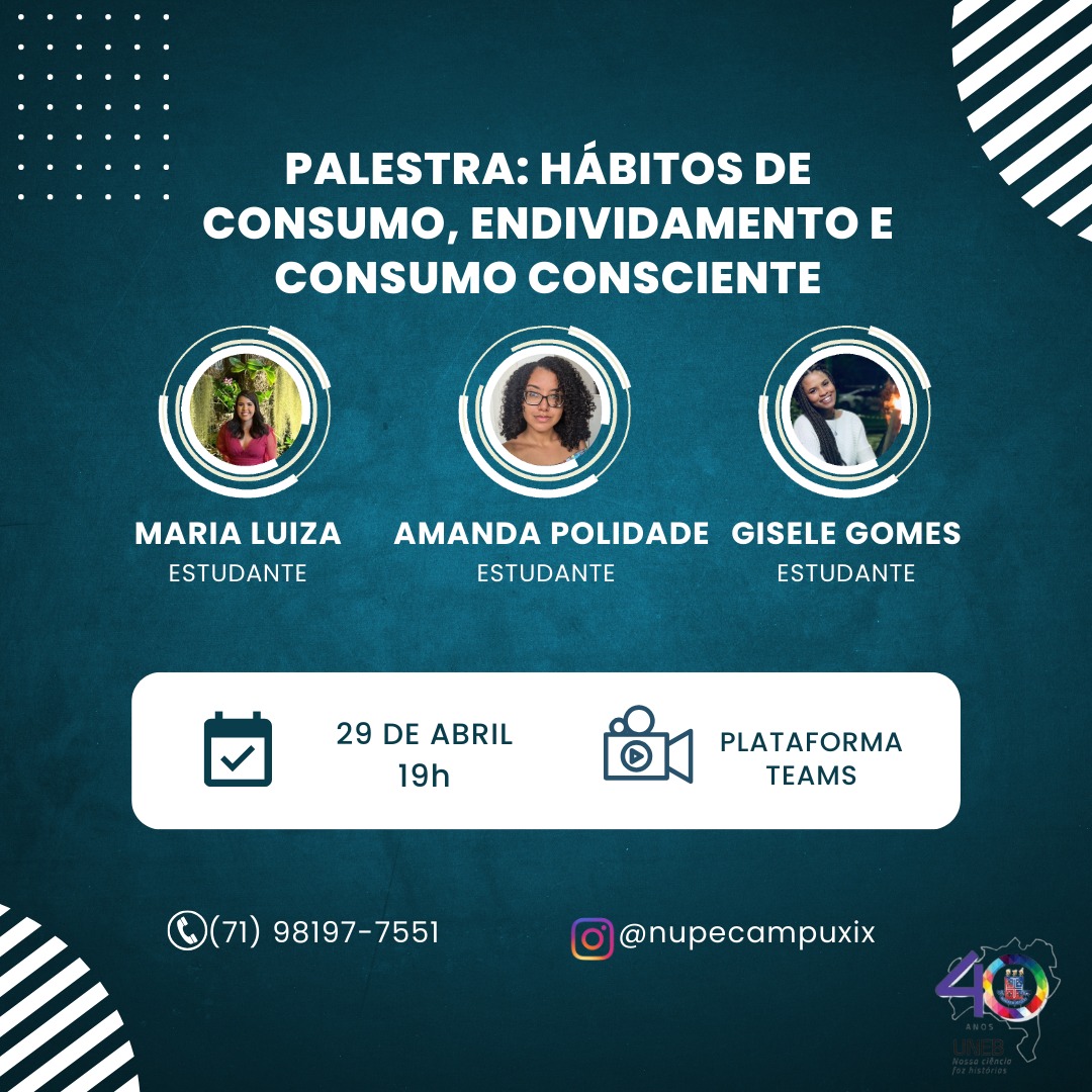DCHTXIX Inscrição - 24/04/2024 à 29/04/2024Palestra Hábitos de Consumo, Endividamento e Consumo Consciente