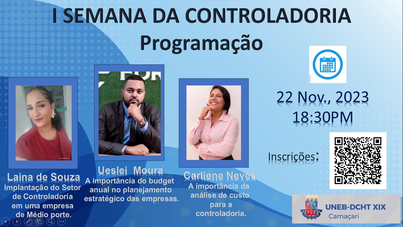 DCHTXIX Inscrição - 13/11/2023 à 23/11/2023Este evento tem o intuito de compartilhar vivências e oportunidades no exercício da Controladoria abordando temas atuais e exemplos práticos.