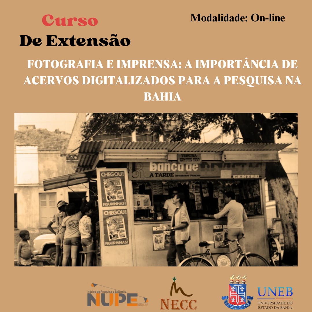 DCHIV Inscrição - 31/10/2023 à 22/11/2023Como parte do projeto de pesquisa e extensão FOTOGRAFIA E IMPRENSA SERTANEJA: AÇÕES DE DIGITALIZAÇÃO, PESQUISA E EXTENSÃO ATRAVÉS DE ACERVOS DOCUMENTAIS EM JACOBINA (BA), o curso visa demonstrar a importância da digitalização para a preservação da memória da imprensa e da fotografia nos sertões baianos como fundamentais para melhor compreendermos o pensamento e imaginário de suas populações, especificamente da região de Jacobina. Preservar esses patrimônios é preservar a cultura regional brasileira e assim poder compreender mais a diversidade cultural dentro de um território delimitado como a Bahia. O curso, então, pretende demonstrar que o trabalho de digitalização dessa produção jornalística e fotográfica do interior é de grande serventia para as pesquisas na Bahia e interação destes dados com os pesquisadores sobre os sertões baianos, sobre outras regiões, bem como apresentar pesquisas já realizadas tanto na região supracitada quanto na Bahia como um todo. Dividido em 4 dias de 3 horas cada, o curso obedece ao seguinte cronograma: 16/11, às 17 horas – Imprensa e identidade no recôncavo baiano. Ministrante: Prof. Dr. Péricles Diniz (UFRB) 17/11 às 17 horas – Imprensa, acervos e pesquisa nos sertões baianos. Ministrante: Prof. Dr. Adriano Menezes (UNEB) 23/11 às 17 horas – Fotografia, acervos e pesquisa sobre os sertões baianos. Ministrante: Prof. Dr. Valter de Oliveira (UNEB) 24/11 às 17 horas – Arquivos fotográficos, movimentos negros e História pública. Ministrante: Prof. Dr. Elson Rabelo (UNIVASF)