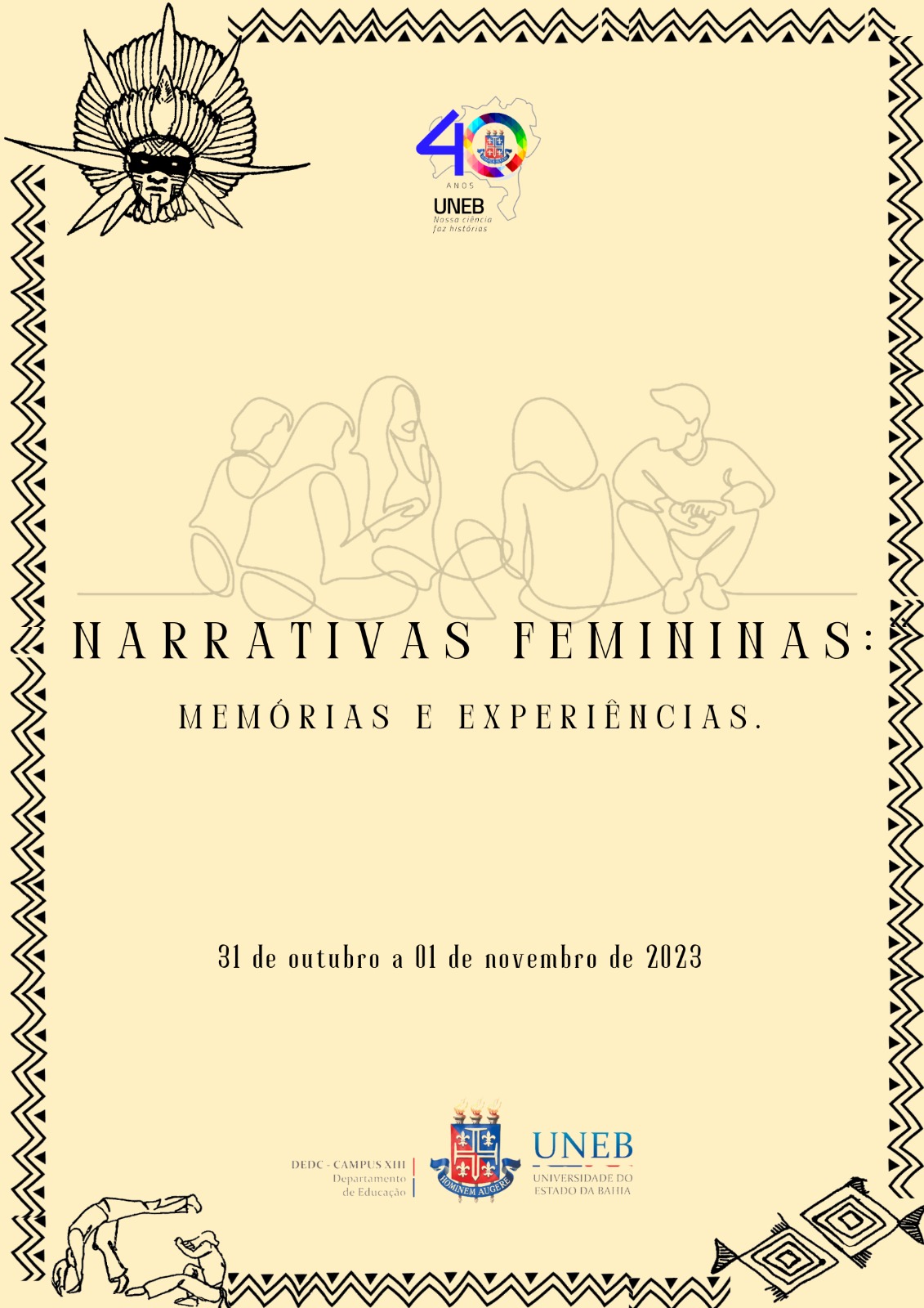 NUPE DEDCXIII Inscrição - 24/10/2023 à 01/11/2023O Evento Narrativas Femininas: Memórias e Experiências está inserido no cronograma de atividades do Projeto de Extensão Narrativas Orais e Memória cujo objetivo é oferecer aos alunos de graduação da Uneb- Campus XIII e a comunidade em geral, o acesso a abordagem e caminhos teórico-metodológicos da História Oral, pensando, sobretudo, nesta, como instrumento relevante para tecer memórias de experiências socioculturais e políticas cotidianas da sociedade civil organizada, coletivos e de manifestações culturais, principalmente dos segmentos populares da sociedade, mas não somente. Tecer memórias, nesse caso, amplia o contato com outros saberes e, portanto, amplia o campo de pesquisa, reflexão histórica e partilha de conhecimento, fortalecendo assim, uma participação mais plural e democrática do que se constituí enquanto memória de um determinado povo, da sociedade brasileira.