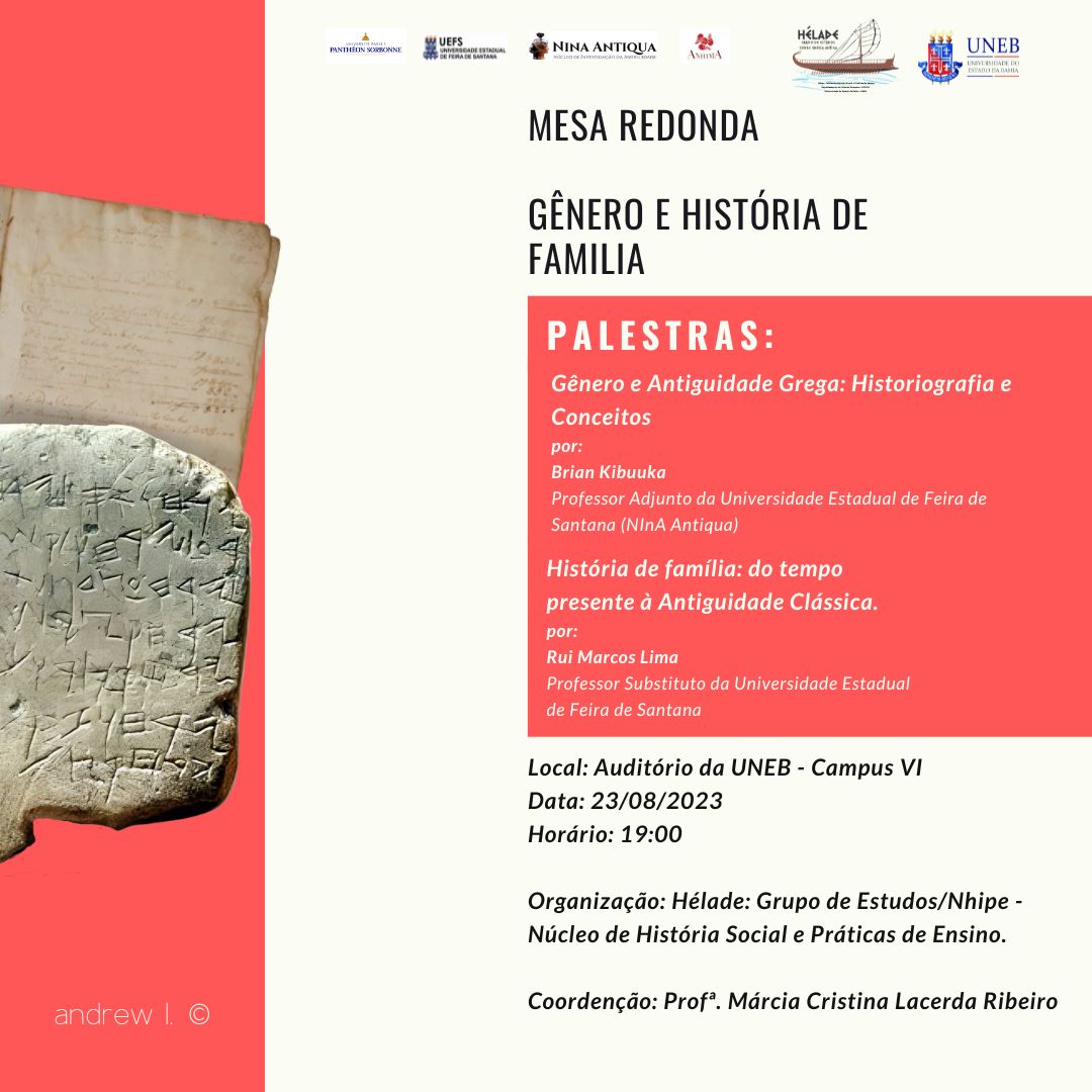 DCHVI Inscrição - 10/08/2023 à 24/08/2023Título: Mesa redonda: Gênero e História de família Período de inscrição: 10/08/23 a 20/08/23 Período do evento: 23/08/23 às 19:00 h, auditório da UNEB, DCH/VI