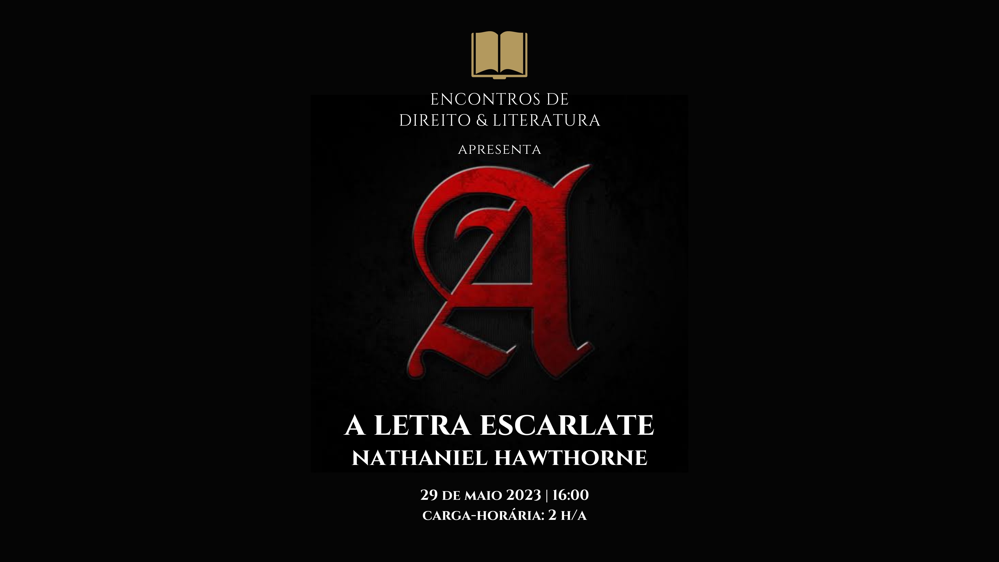 DEDCVIII Inscrição - 03/05/2023 à 28/05/2023O projeto de extensão Encontros de Direito & Literatura traz à roda o romance A letra escarlate, de Nathaniel Hawthorne. SINOPSE Na rígida comunidade puritana de Boston do século XVII, a jovem Hester Prynne tem uma relação adúltera que termina com o nascimento de uma criança ilegítima. Desonrada e renegada publicamente, ela é obrigada a levar sempre a letra "A" de adúltera bordada em seu peito. Hester, primeira autêntica heroína da literatura norte-americana, se vale de sua força interior e de sua convicção de espírito para criar a filha sozinha, lidar com a volta do marido e proteger o segredo acerca da identidade de seu amante. Aclamado desde seu lançamento como um clássico, A letra escarlate é um retrato dramático e comovente da submissão e da resistência às normas sociais, da paixão e da fragilidade humanas, e uma das obras-primas da literatura mundial. INFORMAÇÕES DO ENCONTRO Dia: 29/05/2023 Horário: 16:00 Evento via Microsoft TEAMS Carga-horária: 2 h/a Coordenação e mediação: Prof. Dr. Ivandro Menezes Realização: Colegiado de Direito - DEDC8 - Paulo Afonso
